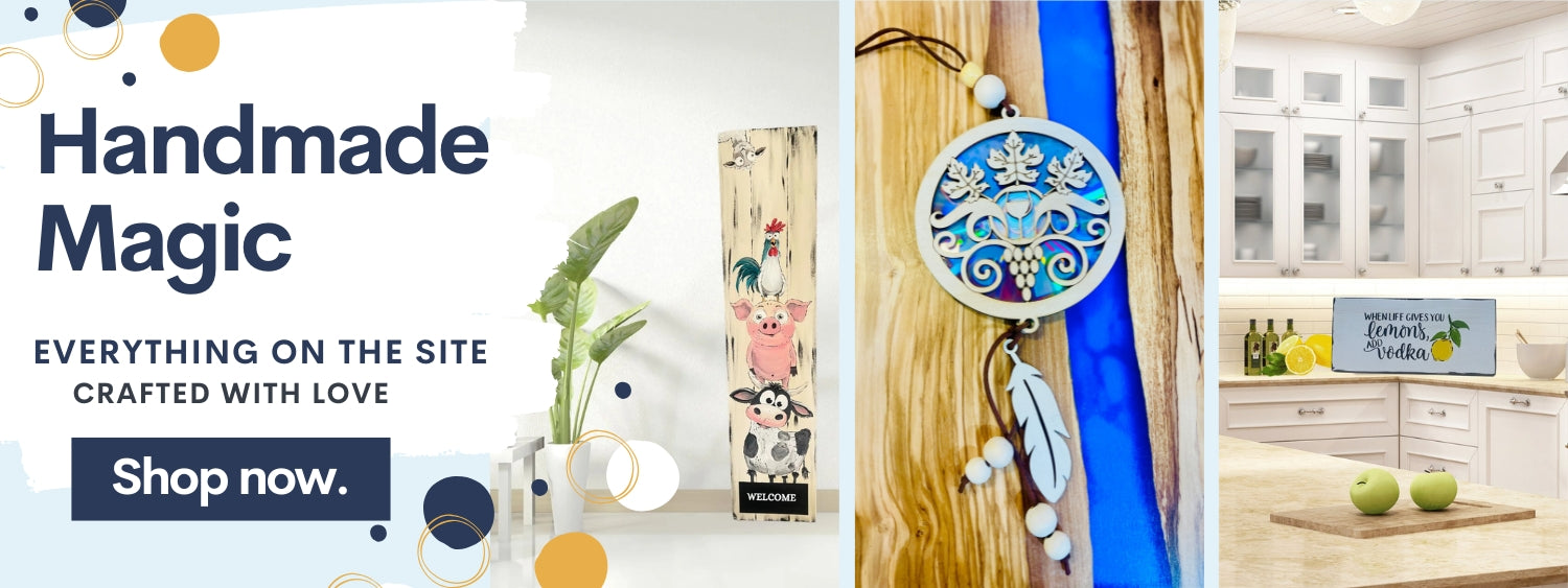 What started during the Covid lockdown as a way to heal and create has now become a family-run studio of handmade home décor and gifts. From porch leaners, door rounds, trays and to charcuterie boards and Tumbler each item is crafted with care, painted by hand or laser engraved and designed to bring warmth into your home.